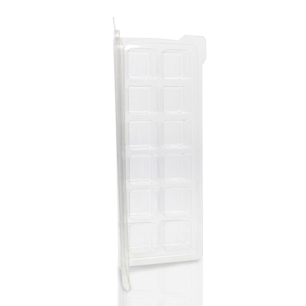 Clear ice cube clamshell for the convenient storage and transport of ice. These sturdy clamshells are designed for durability and clear visibility.