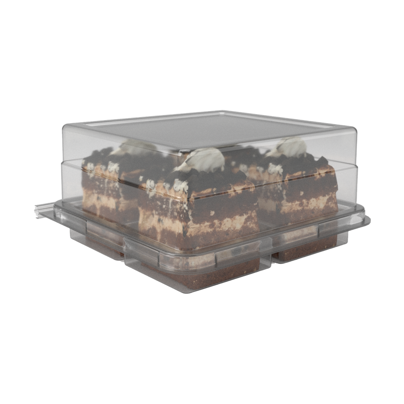 Mini cake clamshell for 4 slices of cake keeps each slice fresh and intact. Lovell’s clear packaging ensures easy transport and professional display.